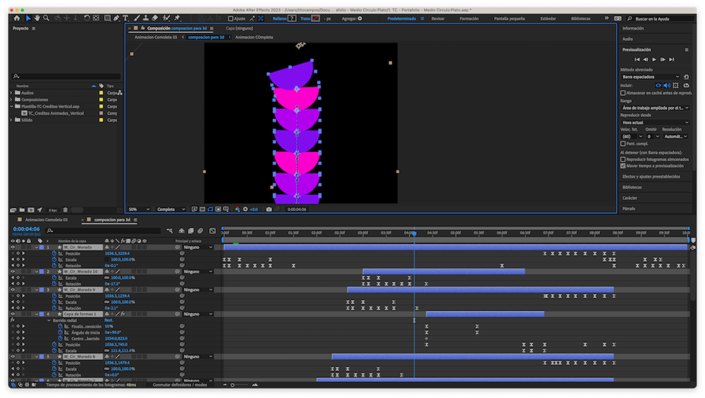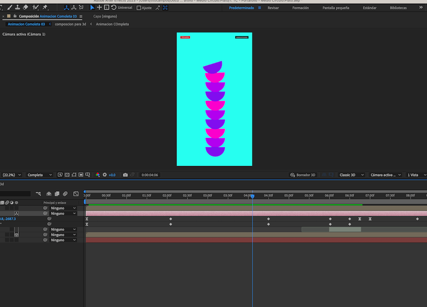 Ejercicio de animación de formas en Adobe After Effects para la clase de Animación Digital. Aplicación de principios de animación, sincronización y musicalización.